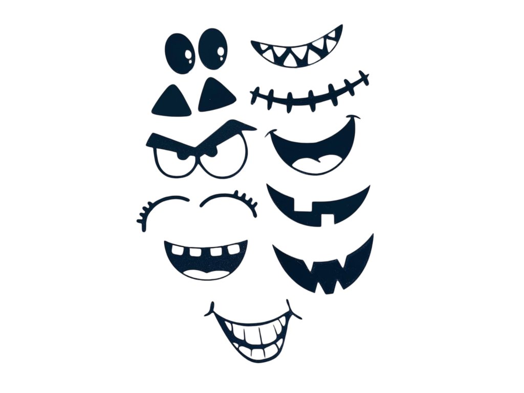 Sada očí + úst obsahuje 4 párů očí a 7 tvarů úst