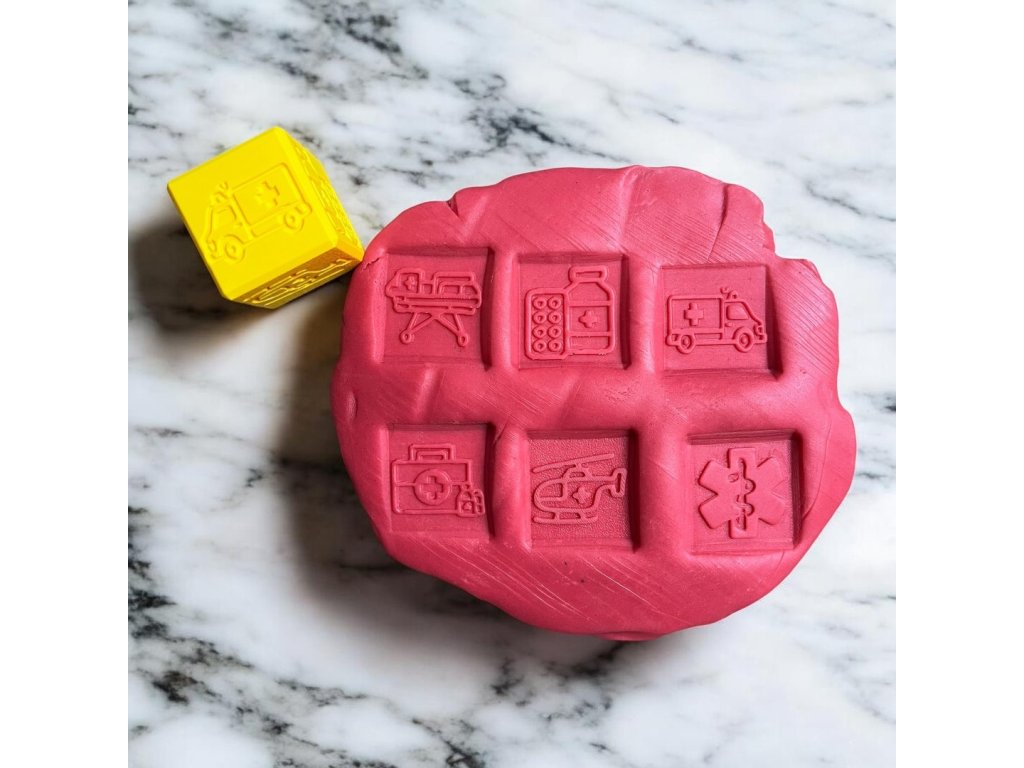 Jedná se o otiskávací kostku s různými motivy záchranné služby, na každé straně je jeden obrázek, celkem tedy 6 obrázků, které můžete otisknout např. do plastelíny