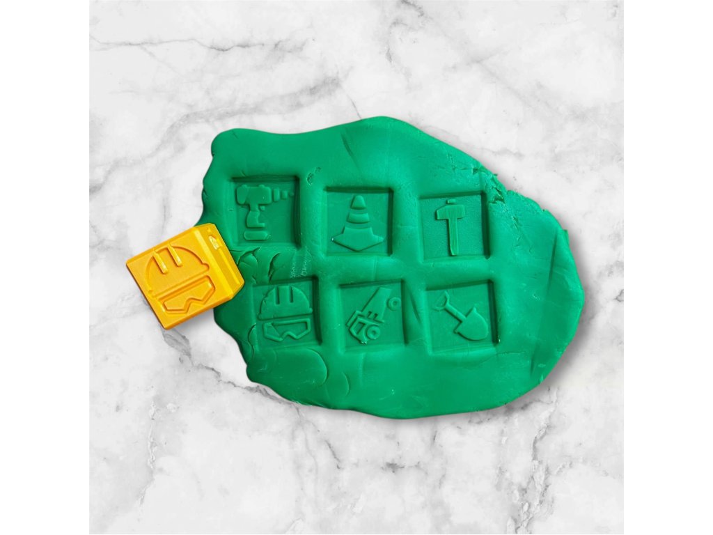 Jedná se o otiskávací kostku s různými motivy stavby, na každé straně je jeden obrázek, celkem tedy 6 obrázků, které můžete otisknout např. do plastelíny