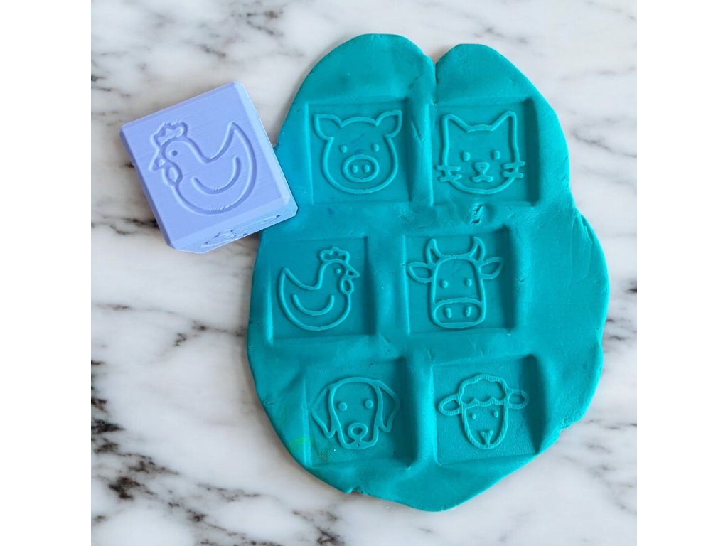 Jedná se o otiskávací kostku s různými motivy zvířátek, na každé straně je jeden obrázek, celkem tedy 6 obrázků, které můžete otisknout např. do plastelíny